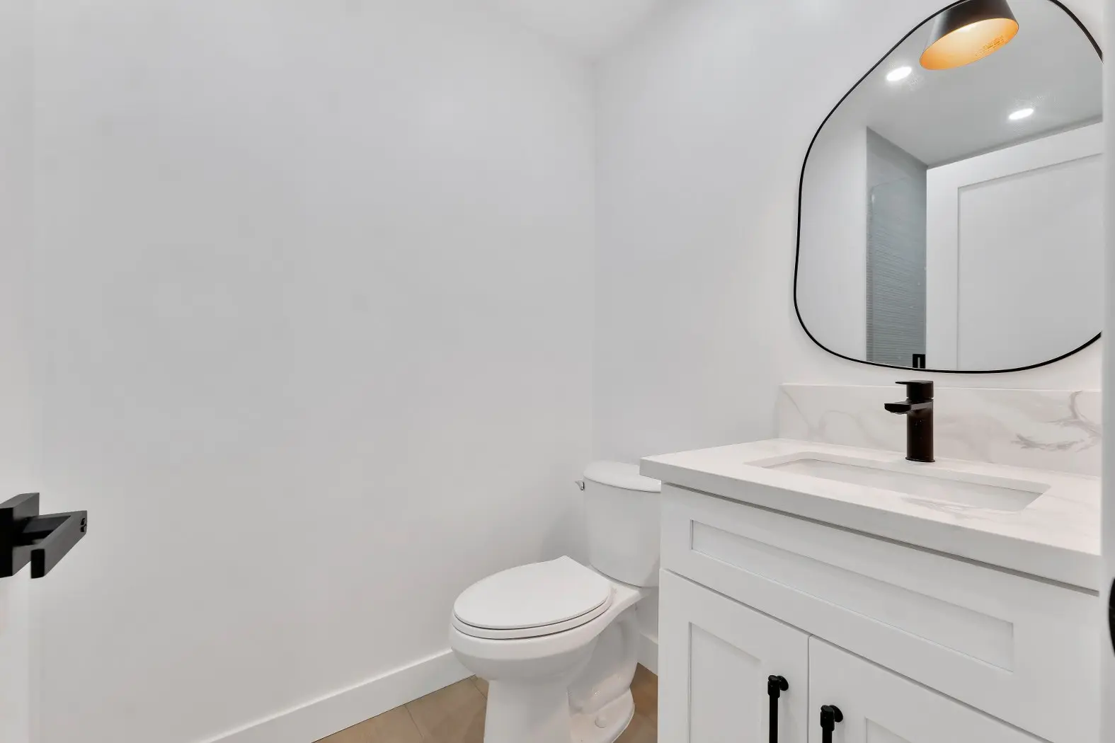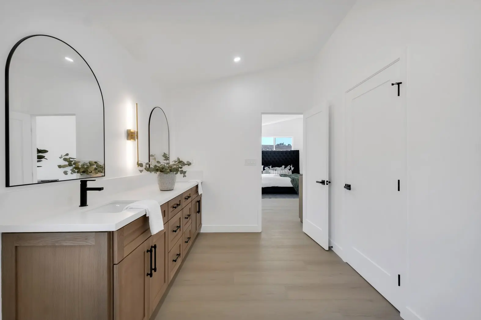 Wide-plank wood flooring throughout for warmth and sophistication.